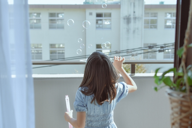 直射日光を避けられるベランダやお風呂場でのシャボン玉あそびも、夏らしさを感じられる室内あそびのひとつです。