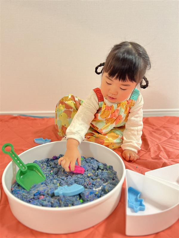 室内用の砂あそびは、感触を楽しめる遊びとして人気があります。
