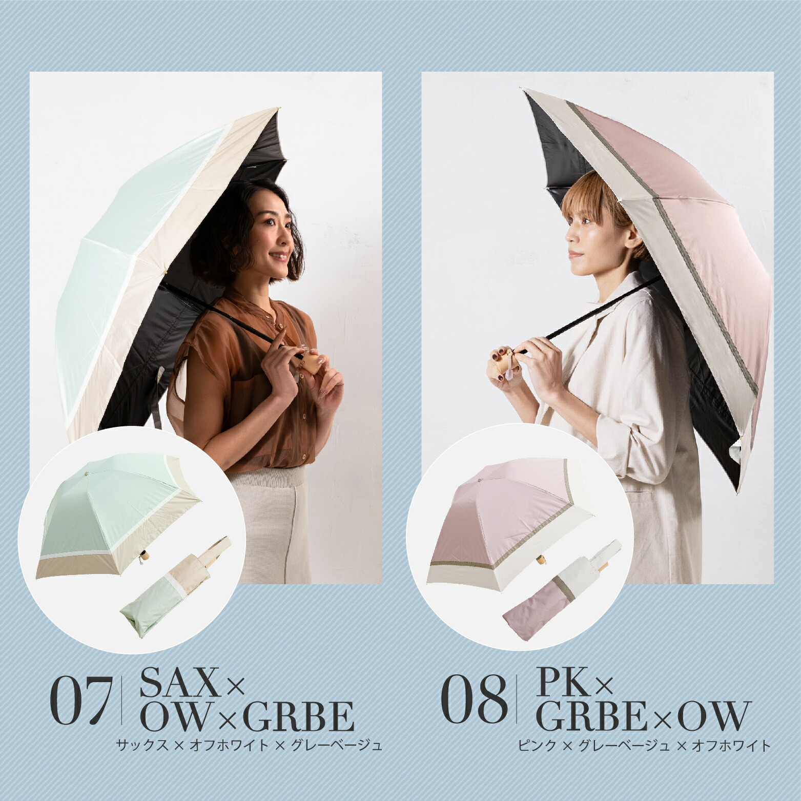 LINE DROPS > 日傘(レディース) > 折りたたみ傘 > 【送料込】Ciel(シエル)の晴雨兼用折りたたみ日傘【無地3段切り継ぎ/8カラー】