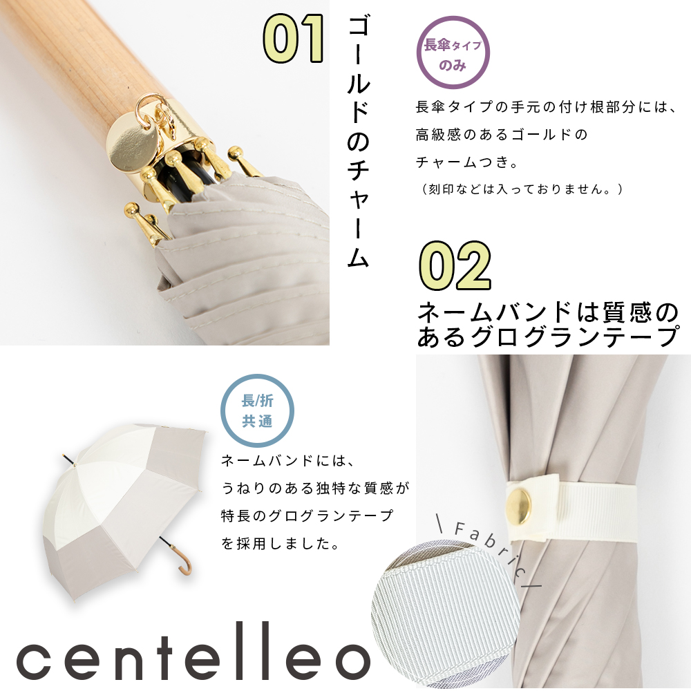 centelleo(センテリオ)の晴雨兼用長傘【2段切り継ぎ/無地ベース】