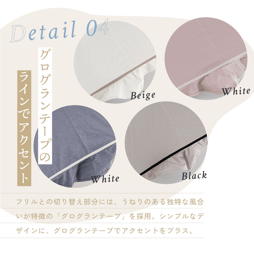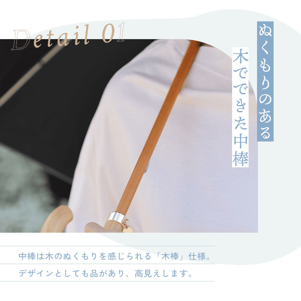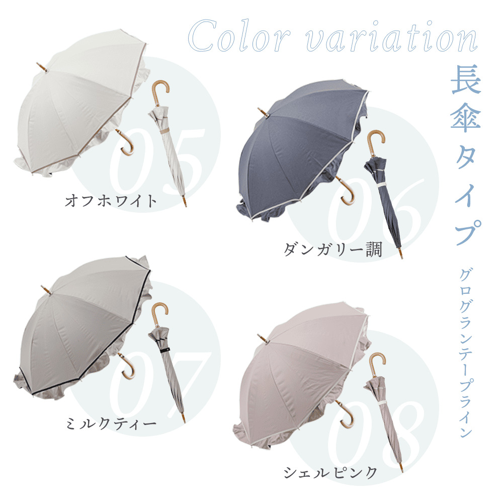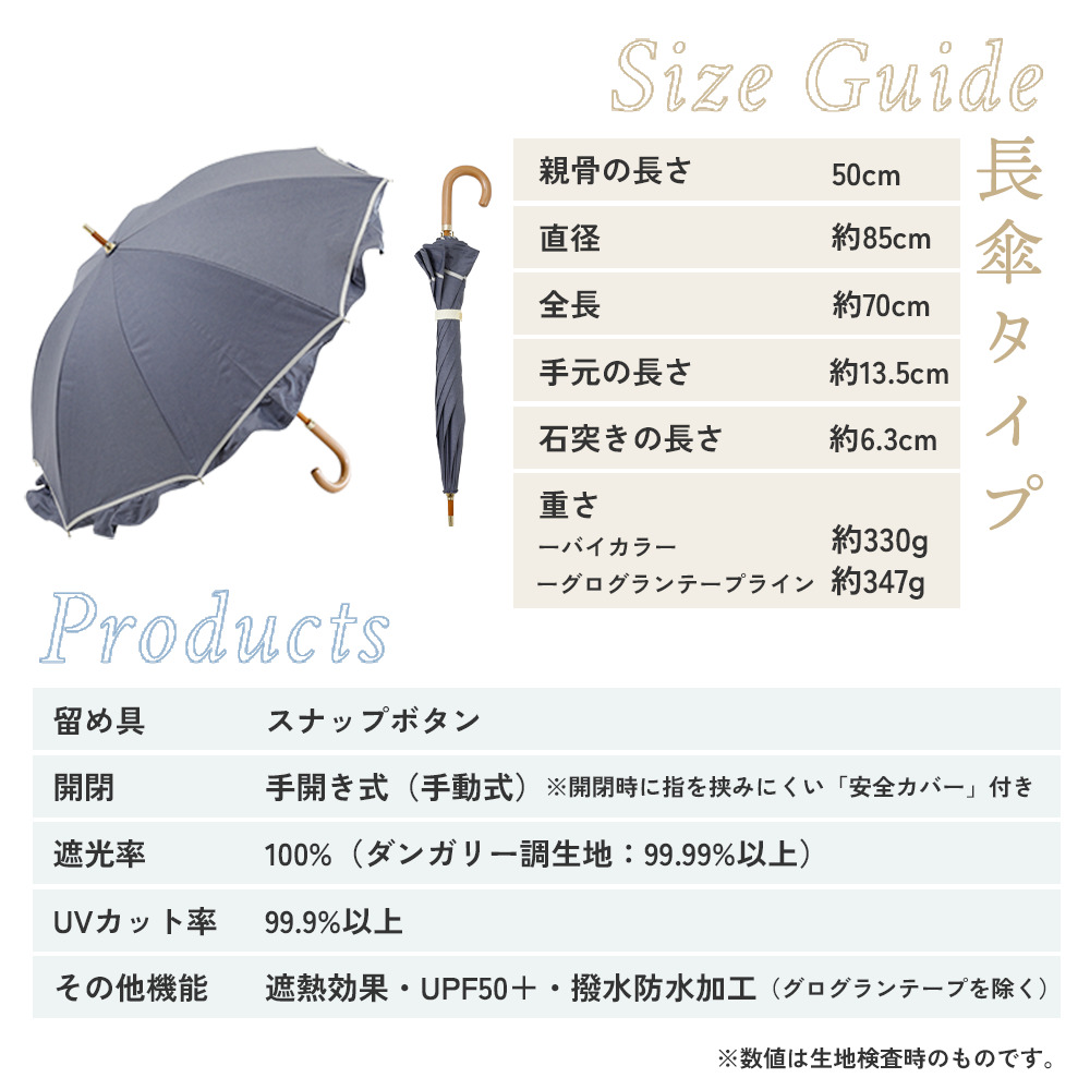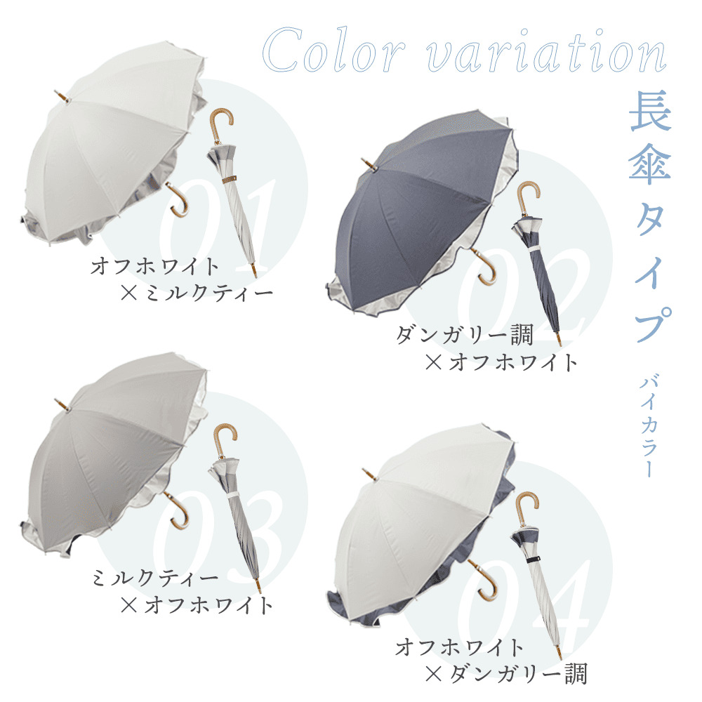ギャザーを寄せずふんわりと広がるペプラムフリルは、甘くなりすぎず上品な華やかさを演出。傘本体と同素材で丁寧に仕上げられたフリルが、見た目にも上質感を与えます。