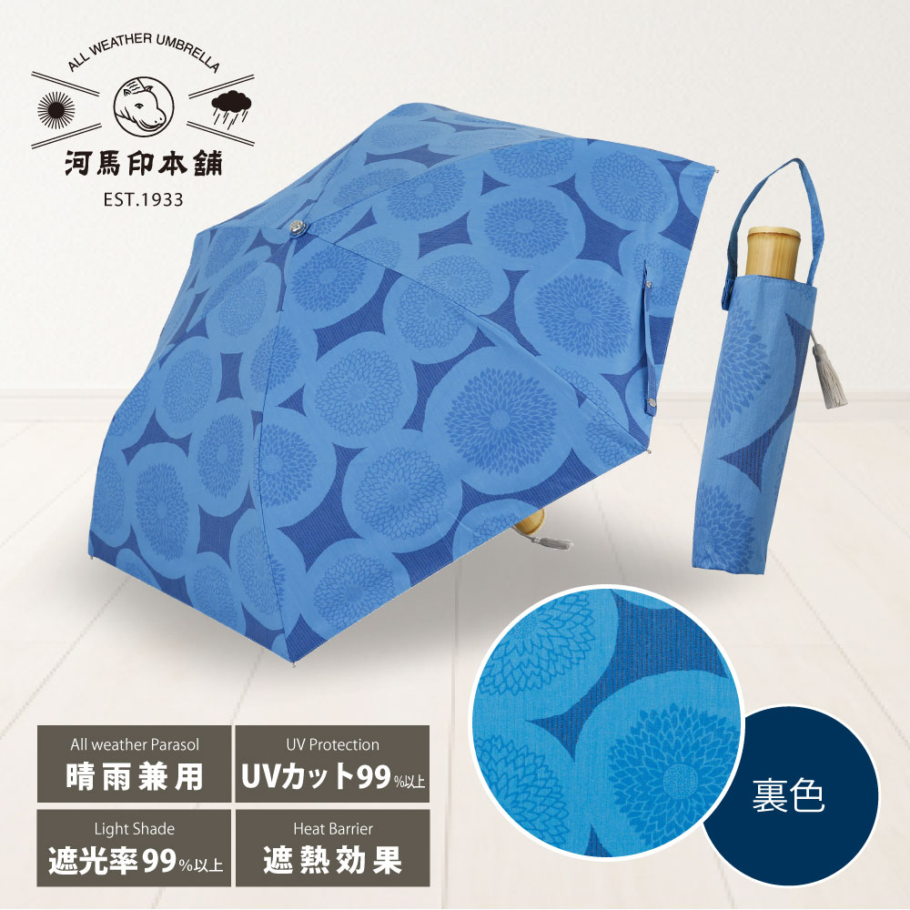 晴雨兼用折りたたみ日傘【ピンポンマム(青藍/せいらん)】