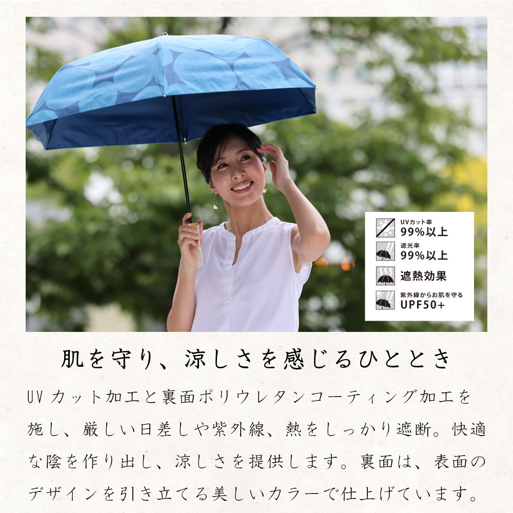 日差しの強い日も安心して使える高機能な日傘です。UVカット率・遮光率はともに99%以上で、デリケートな肌を守ります。