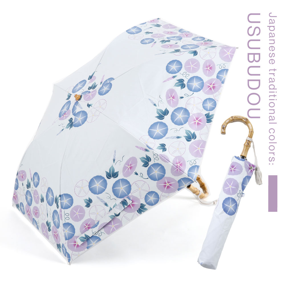 晴雨兼用2段ミニ折りたたみ日傘【あさがお(薄葡萄/うすぶどう)】