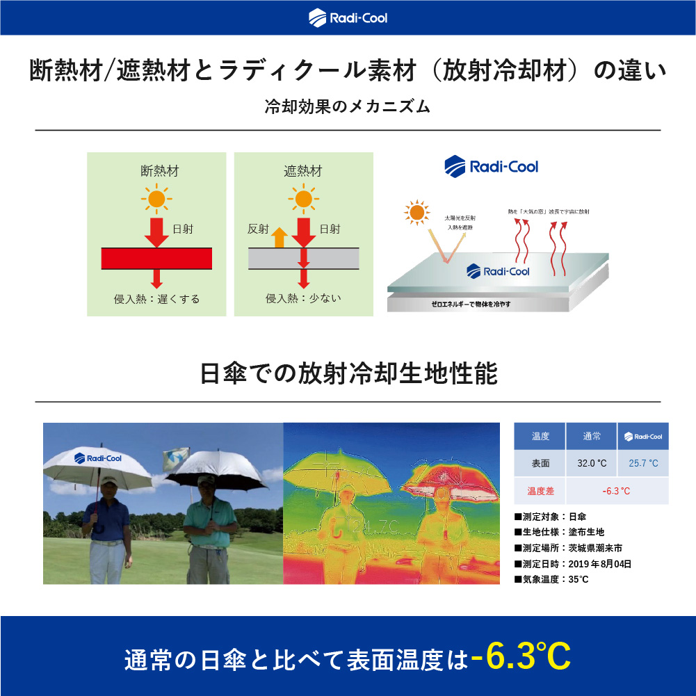 A. 紫外線を通しにくく、太陽の熱や光をやわらげる加工が施された生地を使用しています。ただし、照り返しなどの外的要因により実際の体感には差が生じる場合があります。