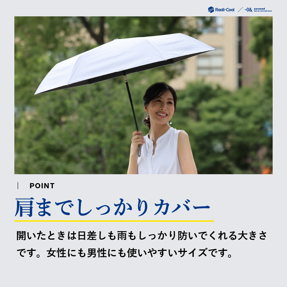 ワンタッチで開閉できる自動開閉式の晴雨兼用折りたたみ日傘。直径約100cmのワイドサイズでしっかり体をカバーしながら、収納時は約28.8cmとコンパクトに持ち運べます。