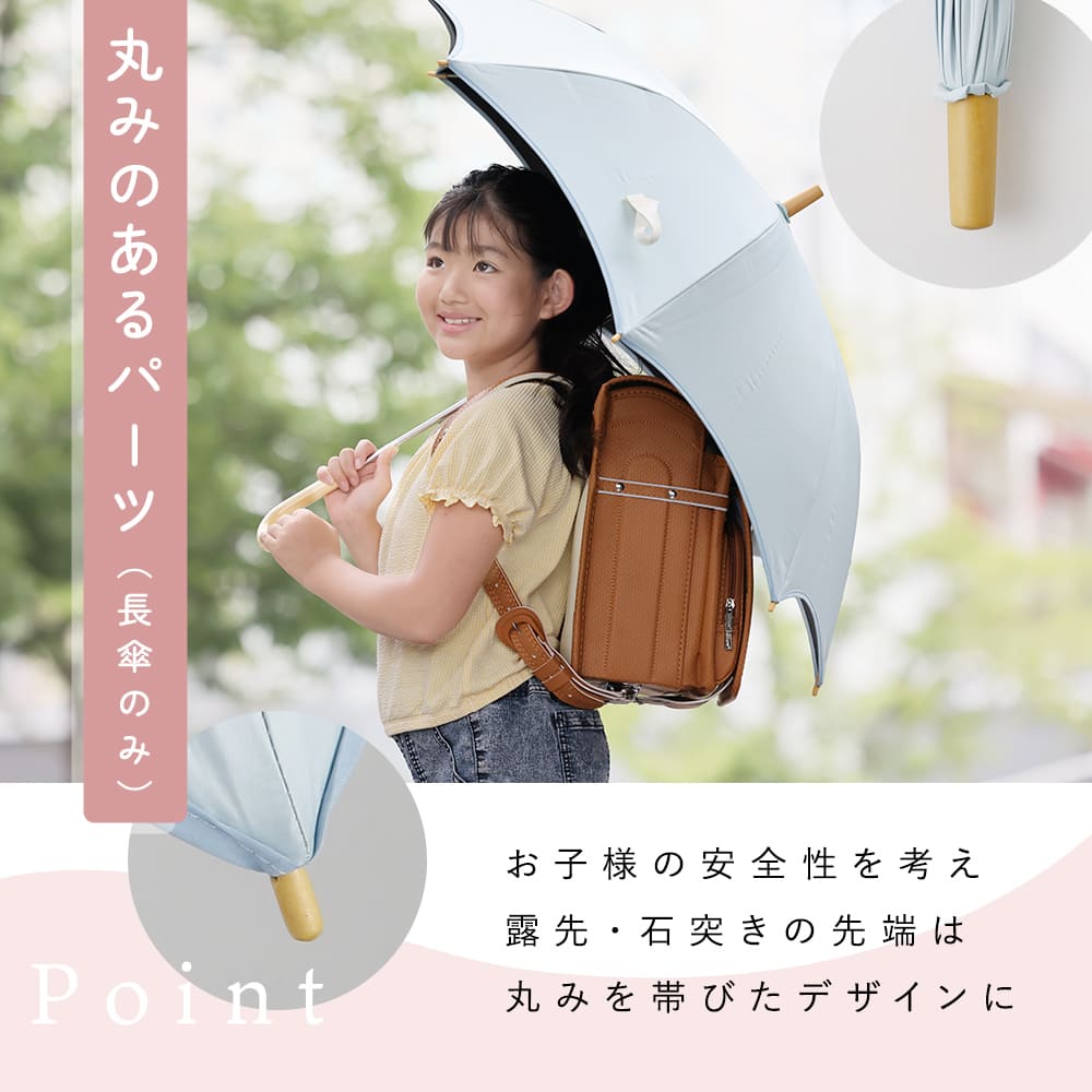 やさしく上品なカラーと切り替えデザインは、まるでママの傘のよう。シンプルながら洗練された印象で、通園やお出かけにも自然に馴染みます。見た目のかわいさだけでなく、機能性と安全性にも配慮した一本です。