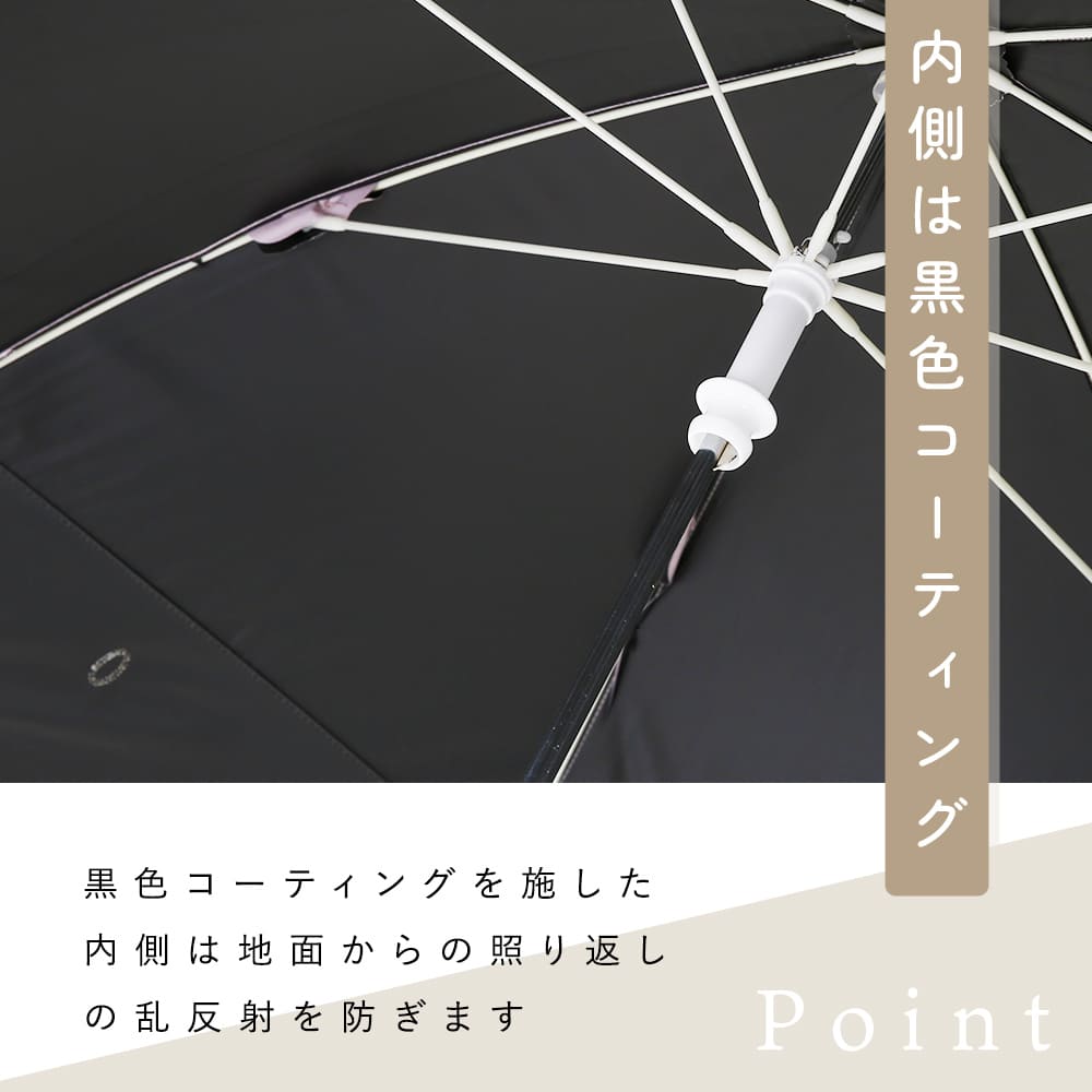 大人向けパラソルの上品なデザインをそのまま、小さな女の子に合わせたサイズで仕立てたキッズ日傘。遮光率100%・UVカット率99.9%以上の高い遮熱性で、強い日差しからお子さまの肌をしっかり守ります。撥水加工付きで、突然の雨にも対応できる晴雨兼用タイプです。