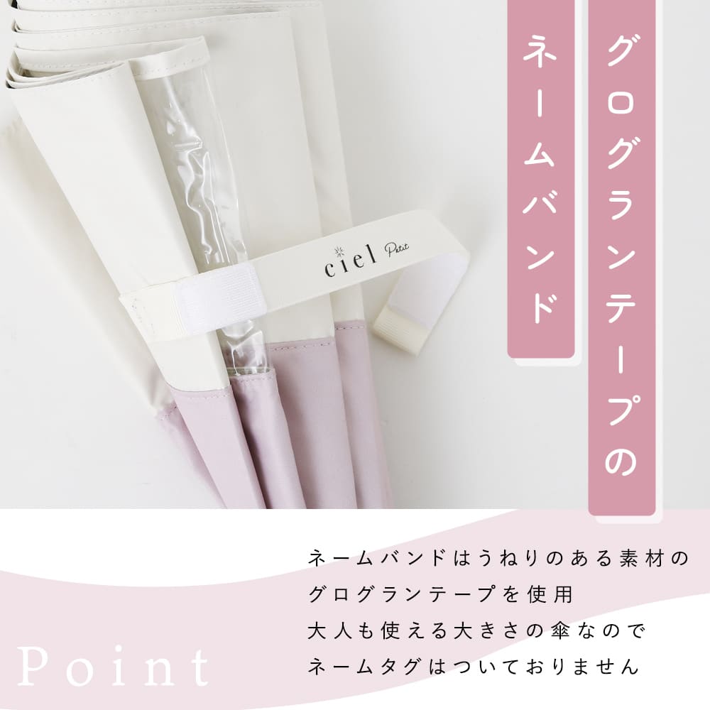Ciel(シエル)のキッズ日傘は、大人の女性向けパラソルのデザイン性をそのままに、小さな女の子にぴったりのサイズと安心設計で仕立てた、晴れの日も雨の日も頼れる1本です。