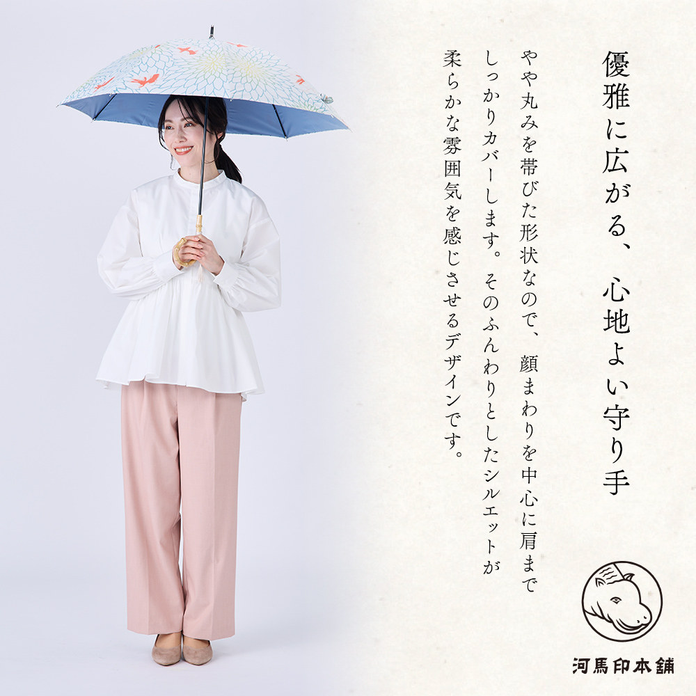 LINE DROPS > 日傘 > 日傘(レディース) > 長傘 > プリント > 晴雨兼用日傘【切子(紺青/こんじょう)】