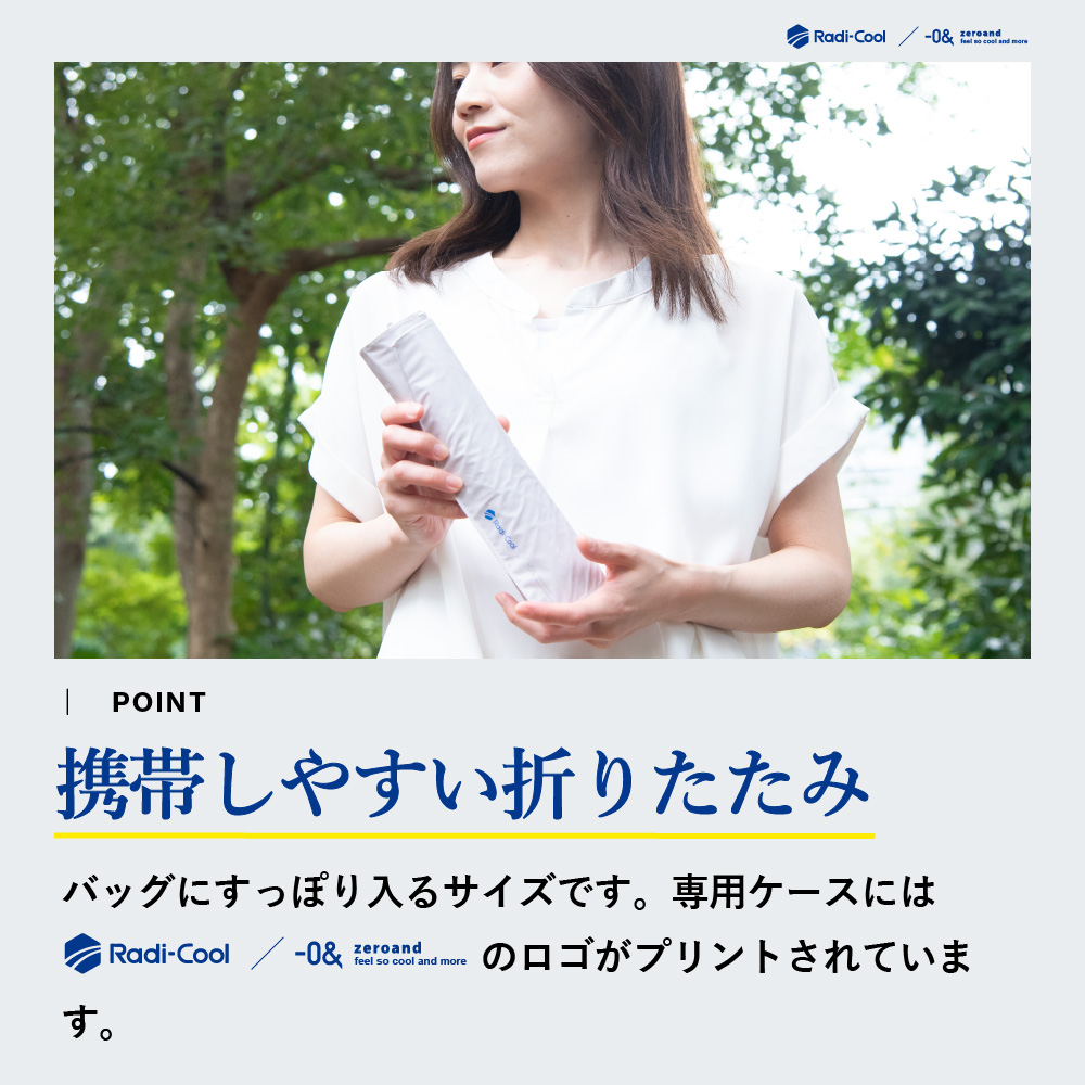 通勤・買い物はもちろん、フェス・スポーツ観戦・公園遊びなど炎天下での時間が長いシーンでこそ、Radi-Coolの放射冷却効果が活躍。日陰よりさらに快適な空間を生み出します。