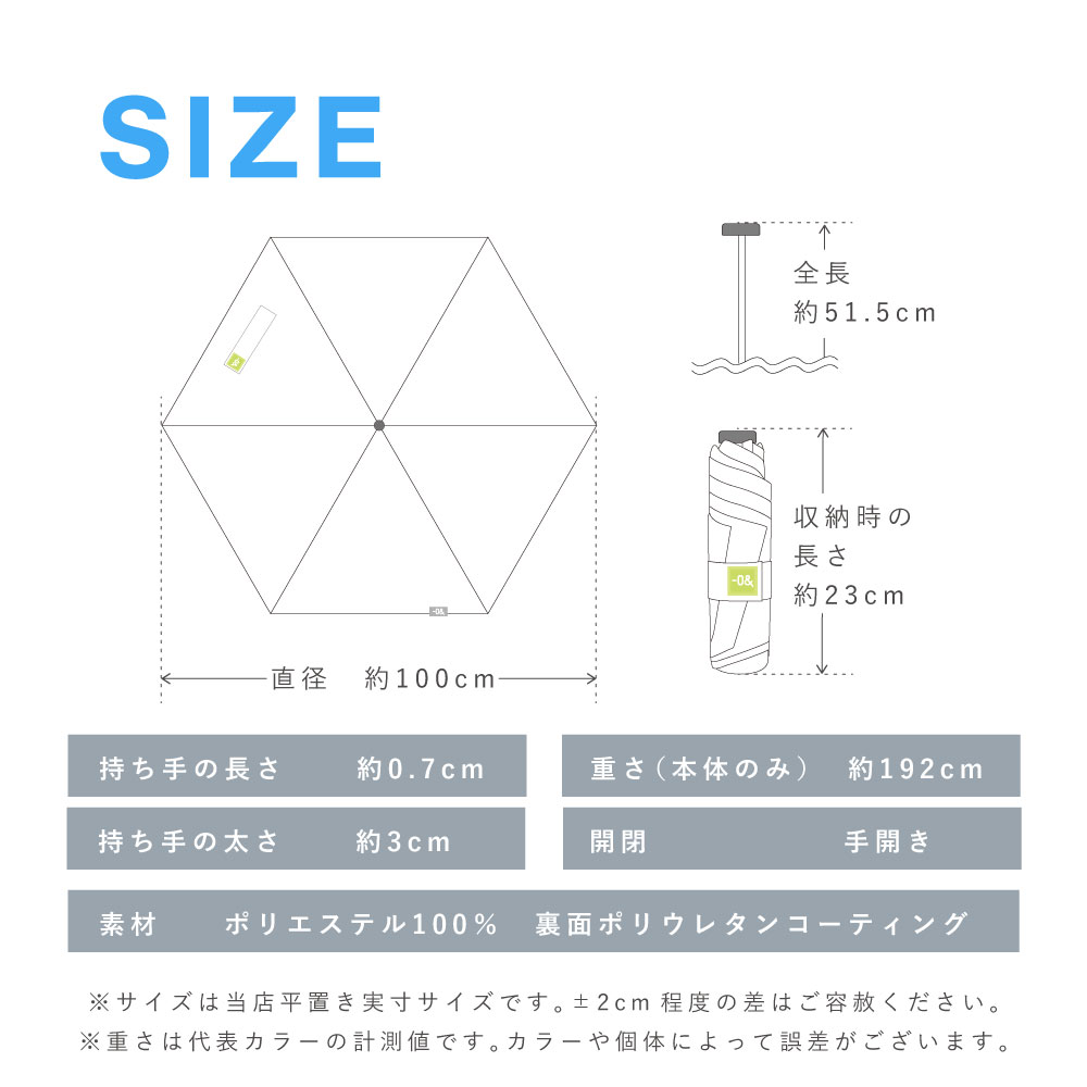 バッグに入れてもかさばらない、軽量折りたたみ日傘です。500mlペットボトルよりも軽く、しかも細いため、毎日持ち歩いても負担が少ないのがポイント。共袋の間口が大きく開くので、傘の出し入れもスムーズです。雨の日にも使用できる晴雨兼用設計で、実用性と快適性を両立した一品です。