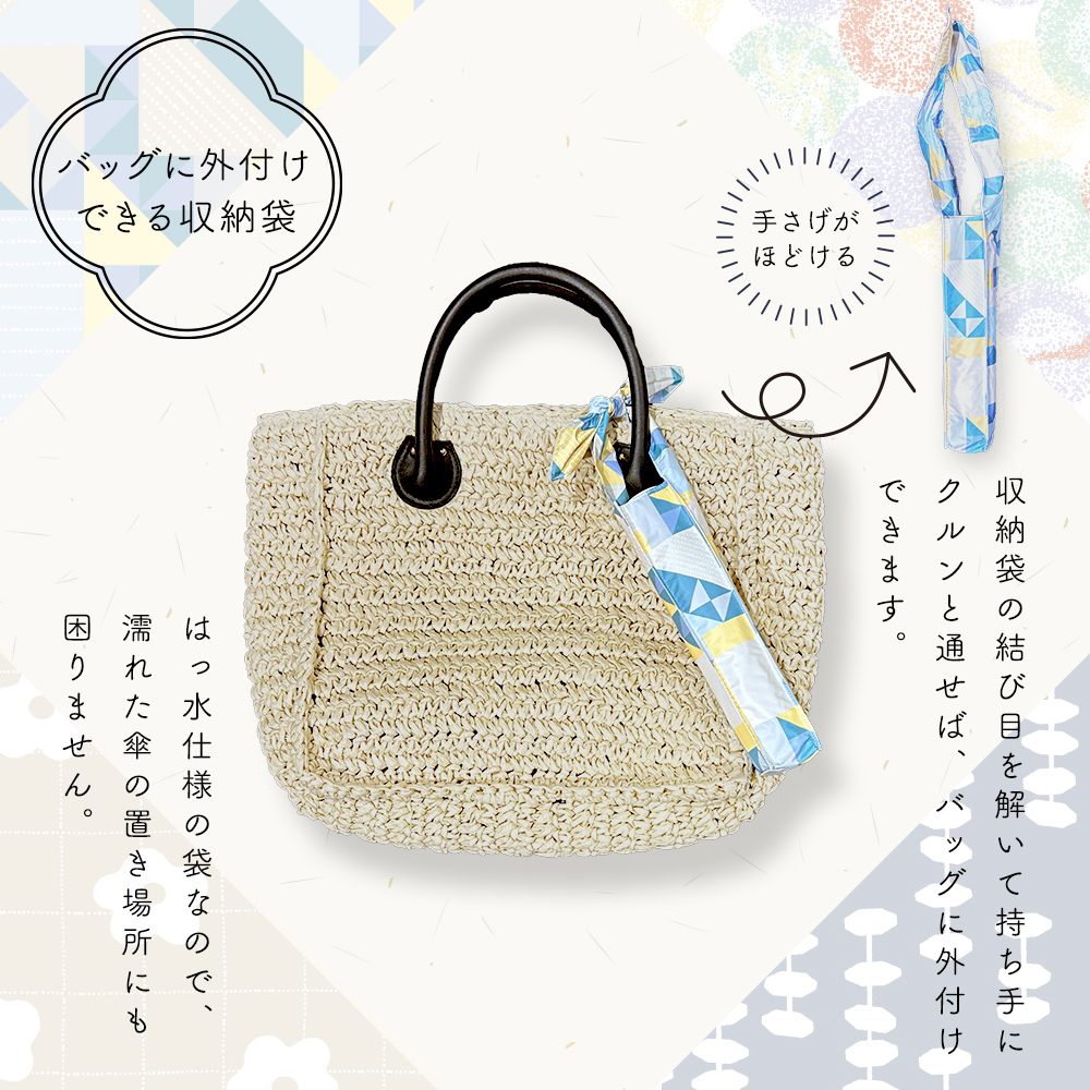 “和”のエッセンスを取り入れ、風呂敷をイメージした収納袋や、バッグにもすっきり収まるスリム設計で、モダンな和の趣を気軽に楽しめます。
