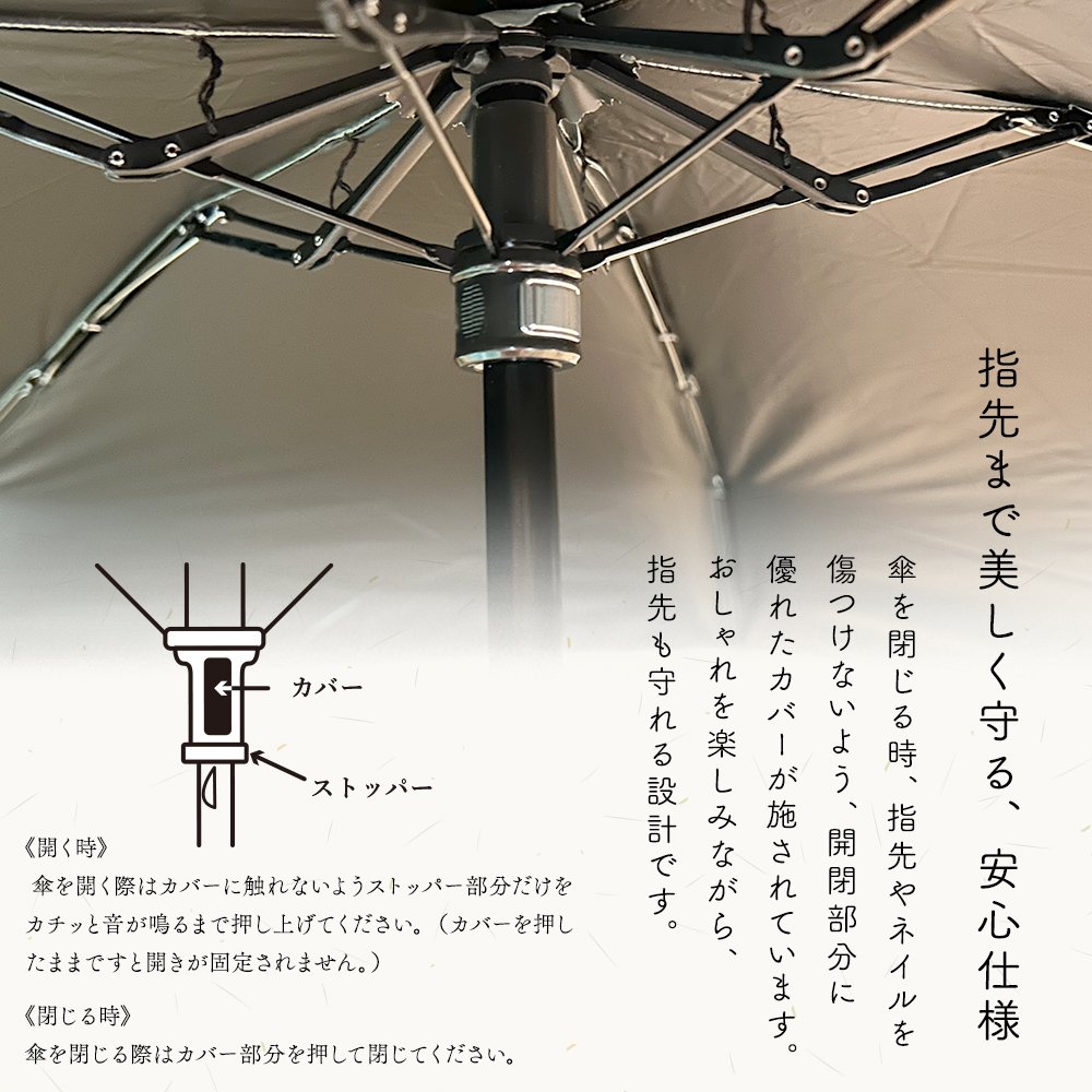 • 傘を閉じるときに指をはさまない「安全カバー付き」