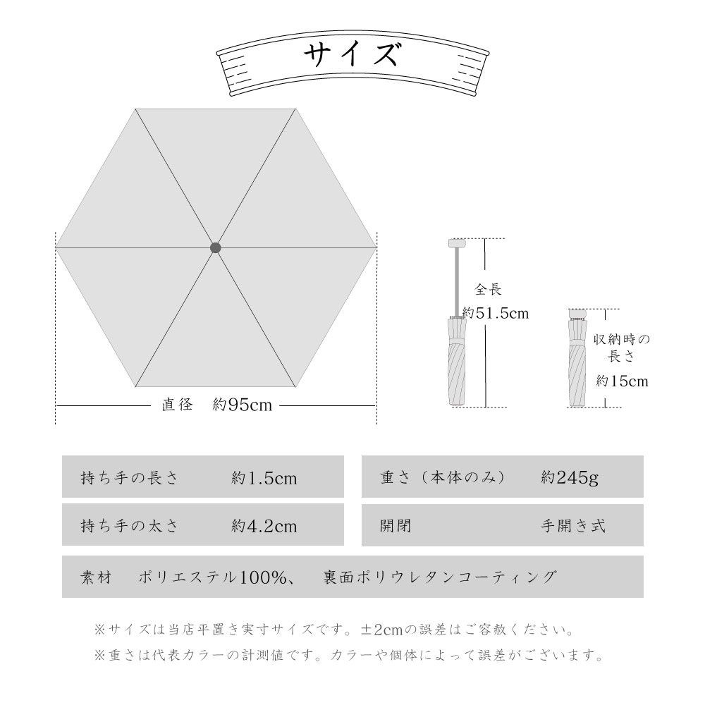 [親骨の長さ]:50cm、[全長]:約51.5cm、[収納時の長さ]:約15cm