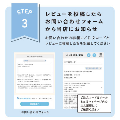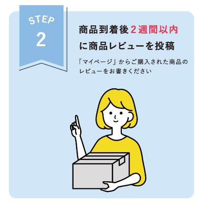 商品お届け後2週間以内に、商品レビューを投稿してください。